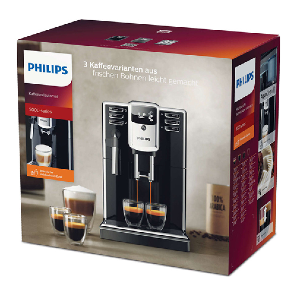 Автоматична кавоварка Philips 5000 EP5310/10 ребрендинг відомої Saeco Incanto HD8912/09 - одна з найпопулярніших побутових кавоварок нового формату. Кнопки навігації, меню та міцності кави винесені на боки LED-дисплею, для більш зручного користування. За допомогою меню можна встановити необхідні налаштування в пам'яті кавомашини. На дисплеї будуть відображатися всі процеси, що відбуваються: нагрів, приготування кави або збивання молока і т.д. Кнопка переходу в режим пари нагріває кавоварку до оптимальної температури для приготування молочної пінки. Ви просто повертаєте регулятор і збиваєте молоко за допомогою насадки «капучинатор». Крім того, кавоварка просигналізує спеціальними символами, якщо закінчилася вода або кавові зерна. Фронтальна панель кавомашини виконана в чорному кольорі, що надає апарату стильний зовнішній вигляд. Заварювальний пристрій всередині апарату та піддон для крапель легко знімаються, всі відсіки мають верхній або фронтальний доступ.