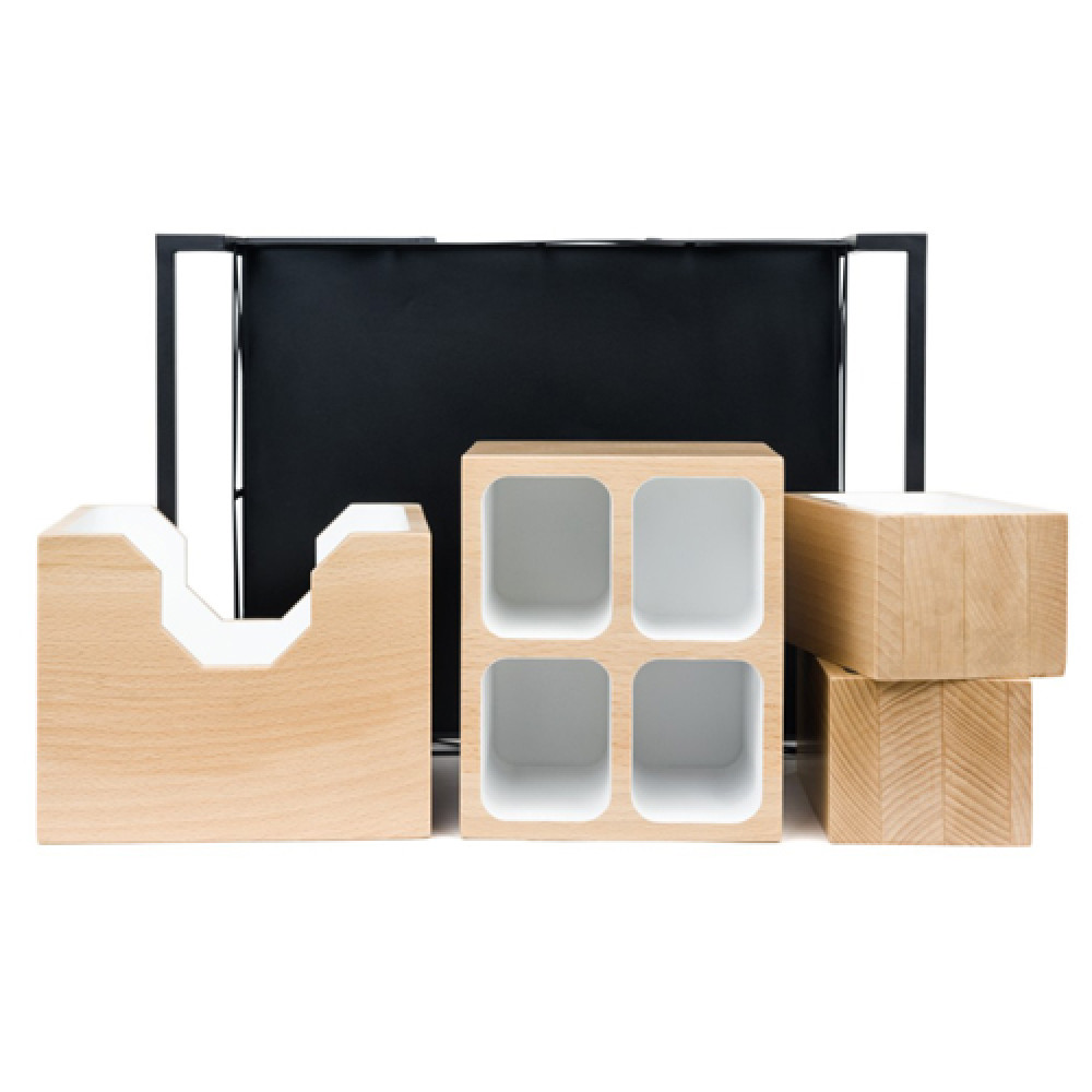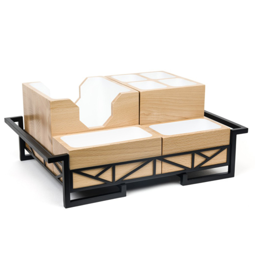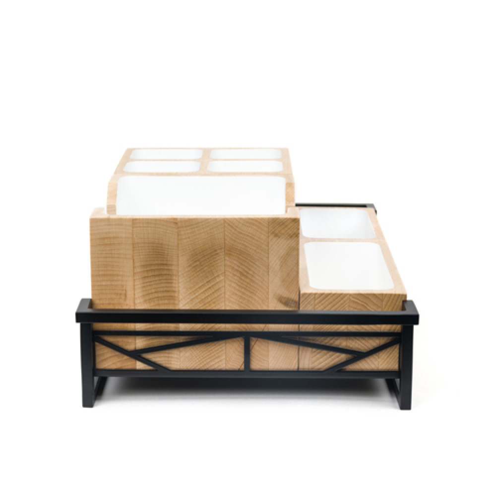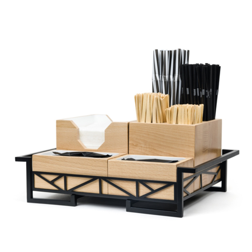 Барний органайзер Seven Block від провідного українського виробника кавових аксесуарів Coffee Style (Кофі Стайл). Незамінний предмет для закладів, що готують напої "з собою". Складається з металевого каркаса, в який встановлюються чотири блоки з натурального дерева, що містять сім різних за розміром відділень. Сучасний та ергономічний дизайн підійде до будь-якого інтер'єру закладу