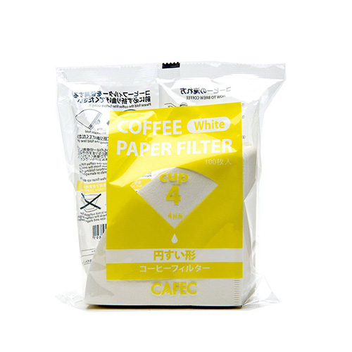Фільтри паперові CAFEC Traditional Filter Paper Cup4 призначені для використання в пуроверах типу V60 на 1-4 чашки. Розмір Cup4 використовується для заварювання 2-4 порцій кави. Фільтри CAFEC мають “двосторонній креп” завдяки оригінальній технології виготовлення паперу. Мокрий папір сушиться струменем гарячого повітря у плоскому стані. Завдяки такій технології виготовлення фільтрувальний папір краще утримує мікрочасточки кави при заварюванні, що дає "чисту чашку" у смаку. Також фільтр може утримувати достатній шар повітря між папером і пуровером, щоб кавовий екстракт мав можливість проходити через фільтрувальний матеріал у зонах контакту з прийнятною швидкістю. Для запобігання спотворення смаку готового напою фільтри вибілюються за допомогою кисню