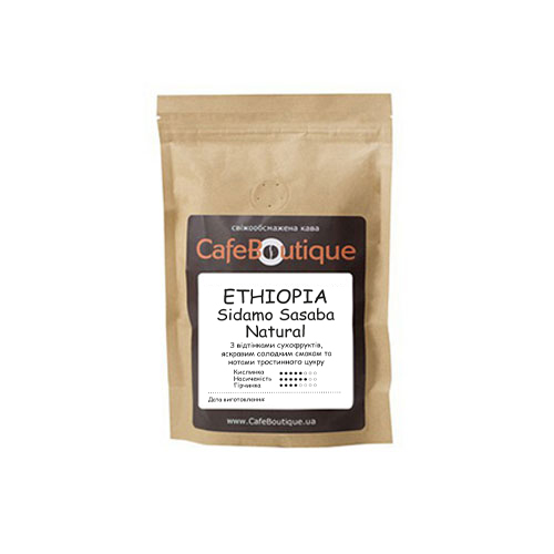 Ethiopia Sidamo Sasaba (Ефіопія Сасаба) (125 г) - ефіопська арабіка класу "Спешеліті" з плантацій регіону Oromia район Guji Zone станція обробки Sasaba Висота зростання кавових дерев +1800 метрів. Тільки добірні стиглі кавові плоди, повністю ручний збір і суха обробка з сушкою на "африканських ліжках" гарантують високу якість зелених кавових зерен, чудовий яскравий аромат і смак. Напій із дуже яскравим комплексним ягідно-фруктовим ароматом, багатий, з м'якою кислотністю і концентрованою солодкістю. Смакові характеристики: полуниця, сухофрукти, тростинний цукор. У післясмаку: цитрусова кислинка, солодкість. Тіло середньої щільності. Дуже добре підходить для еспресо