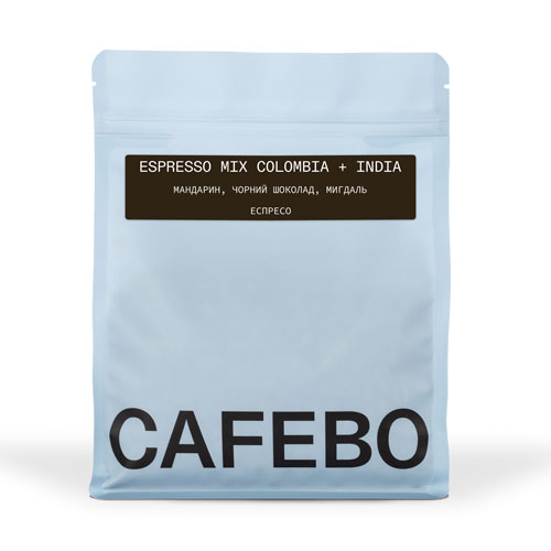 Espresso Mix Colombia + India (Колумбія та ІндІя) - купаж високогірної колумбійської арабіки митої обробки та індійської арабіки. Колумбійські плантації розташовані на висоті 1100-1500 метрів над рівнем моря, така висота дозволяє зерну довше розвиватися, набуваючи відмінних смако-ароматичних властивостей з виразною і впізнаваною цитрусовою кислинкою. А індійська арабіка доповнює напій щільністю та пряними відтінками. Купажування відбувається після обсмаження, що дозволяє обсмажити кожний компонент оптимально та відповідно до його природних властивостей (вологість, щільність, активність води тощо). Смакові характеристики: м'який, солодкий цитрусовий смак з відтінками шоколаду. Чудово підходить під еспресо
