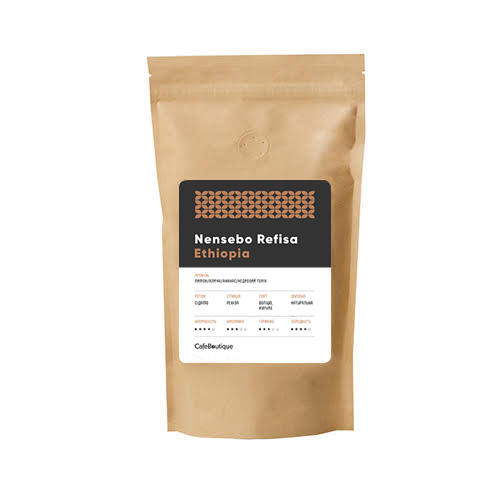 Ethiopia Nensebo Refisa (Ефіопія Ненсебо Рефіса) - ефіопська арабіка натуральної обробки класу преміум з плантацій регіону Сідамо. Ненсебо - це нові території для вирощування кави, розташовані в районі Вест Арсі, який на півдні межує з горою Бейл. Рефіса - село, в якому знаходиться станція обробки кави, і розташоване воно в районі Ненсебо. Цей район об'єднує дрібних фермерів з площею господарств близько 2 гектарів, і всього в даному районі площа ферм, що займаються вирощуванням та обробкою кави, складає 5000 гектарів. Кавові дерева сорту Волішо та Куруме зростають в Рорічо, Булзі та Солені на висоті 1900 - 2070 метрів над рівнем моря. 588 фермерів з жовтня по січень збирають врожай та доставляють його на станцію обробки. Каву замочують в резервуарах, у котрих відбувається розподіл за щільністю та видалення пошкоджених і недозрілих ягід. Потім кавові вишні розкладають на "африканських ліжках" шаром товщиною близько 2 см та сушать, постійно перемішуючи, протягом 20 днів. Смако-ароматика напою: лимон, алича, ананас, кедровий горіх