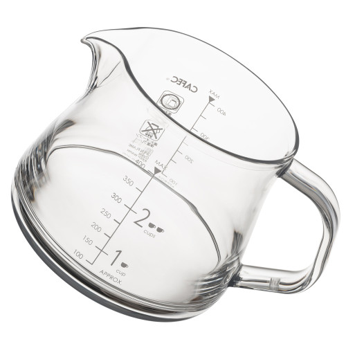 Сервер CAFEC Tritan Coffee Server 400 ml (Кафек Трітан Кофі Сервер) - графін для заварювання кави у воронці. Сервер виготовлений з високотехнологічного пластику Tritan, який стійкий до механічних пошкоджень та речовин, які містить в собі кавовий напій. На боковій частині серверу нанесені умовні позначки об'єму напою у чашках та мілілітрах. Сервер з Трітану дозволяється використовувати у мікрохвильовий печі. Постачається в комплекті з кришкою