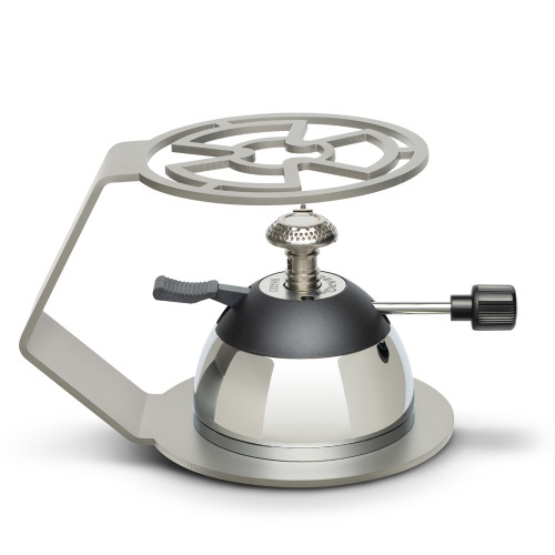 Станція Burner Stand розроблена спеціально для використання з портативними газовими та спиртовими пальниками. Станція у вигляді підставки з основою утримує на оптимальній висоті над пальником джезву/гейзерну кавоварку тощо. Вироблена з цільного металевого листа харчової нержавіючої сталі товщиною у 3 мм, компактна та міцна, підійде як для дому, так і для кав'ярні